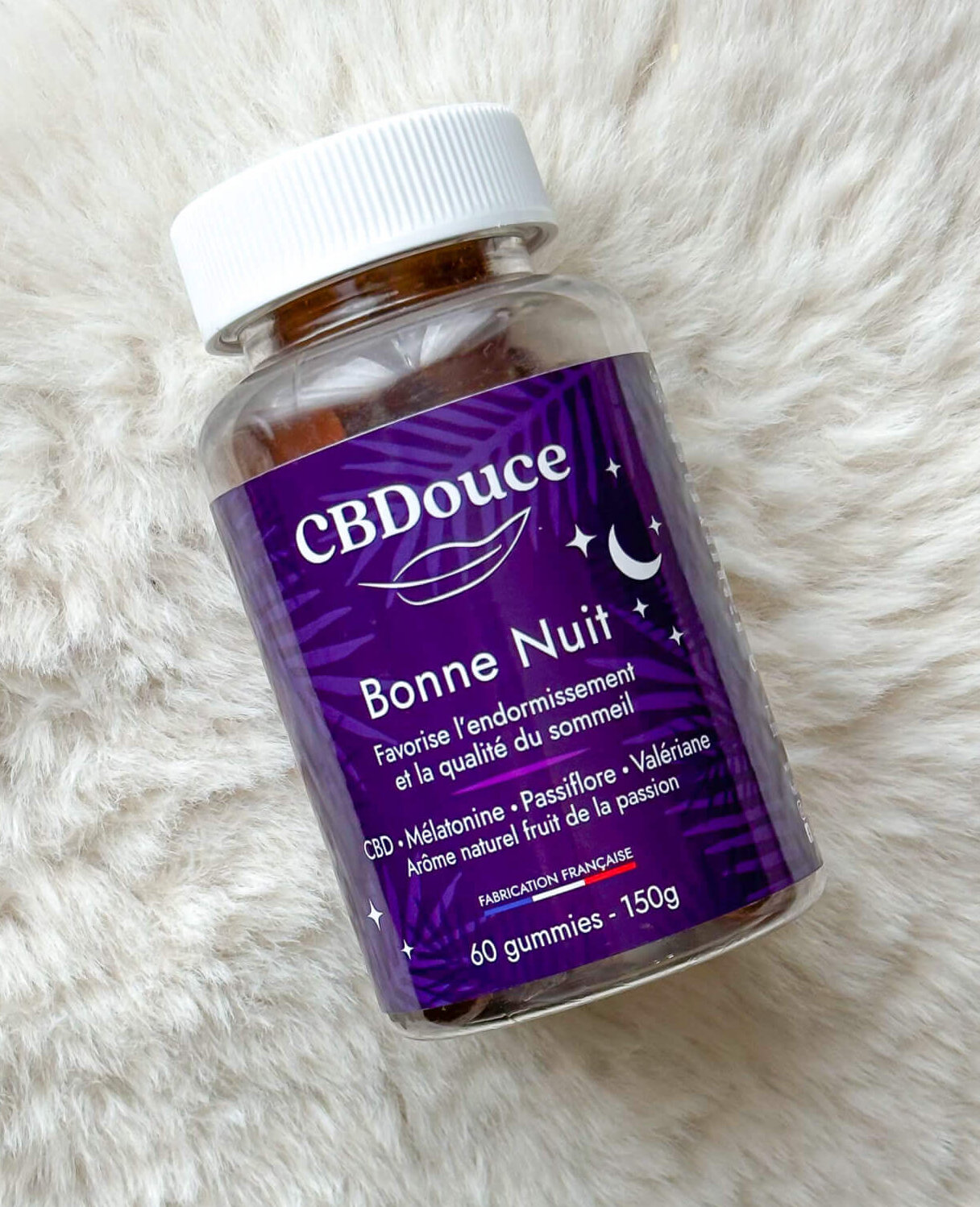 Les gummies au CBD Bonne Nuit sont des petits bonbons gélifiés fabriqués à partir de plantes et de vitamines. CBdouce a élaboré une formule exclusive répondant à toutes les problématiques liées au sommeil. Avec leur forme ludique et leur goût naturellement fruité, nos bonbons et gummies CBD sont un format appréciable et facile à consommer pour des cures d’un mois. Ces délicieux petits bonbons naturels au chanvre en plus de rendre votre coucher paisible, ils possèdent de nombreux bienfaits pour le corps et l’esprit : anxiété et stress réduits, relaxation, détente. Complétez votre alimentation avec ces gommes pour profiter des effets du CBD toute la journée !